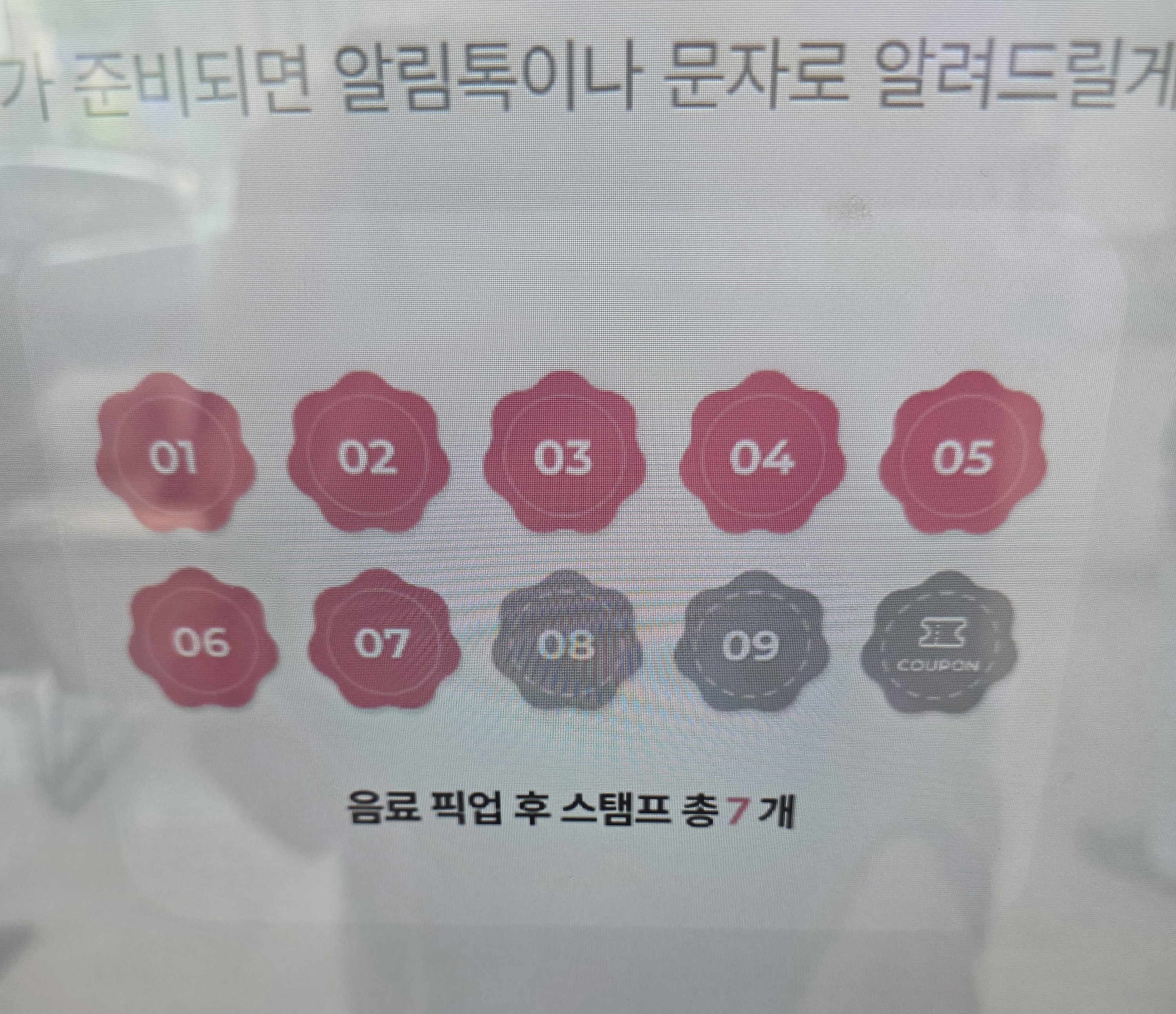 - 음료 스탬프 7개 적립 (9개면 쿠폰)