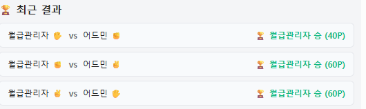 가위바위보 3연패... 어드민님 ㅠㅠ 월급관리자님한테 160P 상납하신 거네요. 오늘 같이 울어요